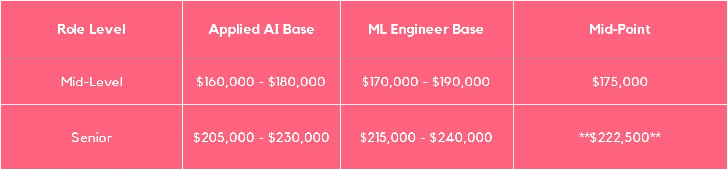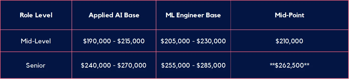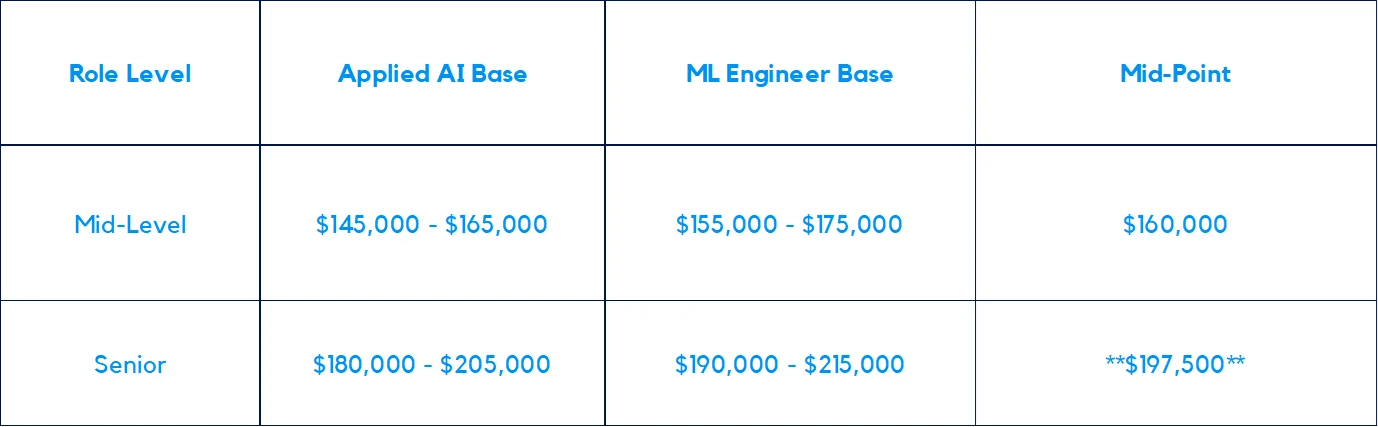 What is the difference between an AI Engineer and a Machine Learning Engineer? Machine Learning Engineers focus on core model architecture and MLOps; they command a 5–10% premium. Applied AI Engineers focus on integration and product features; while their base is slightly lower, they are currently seeing the fastest demand growth.